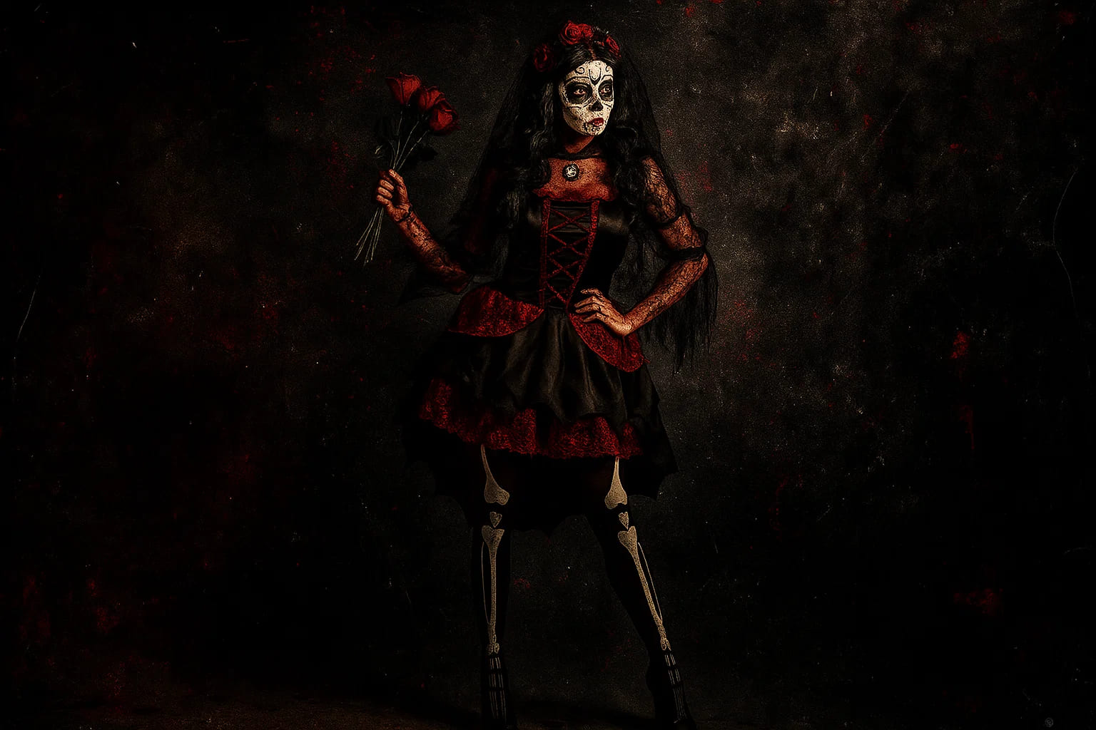 As celebrações de Día de los Muertos conquistaram o mundo pela estética única: caveiras floridas, rendas, bordados e cores intensas que criam looks memoráveis. Se queres um visual feminino com presença, sofisticado e fotogénico, este guia reúne tudo o que precisas para escolher o teu outfit, combinar maquilhagem e acessórios e transformar o teu Halloween numa experiência inesquecível. E, claro, com links diretos para encontrares o teu modelo perfeito na nossa seleção de Disfraces de Día de los Muertos para mulher.