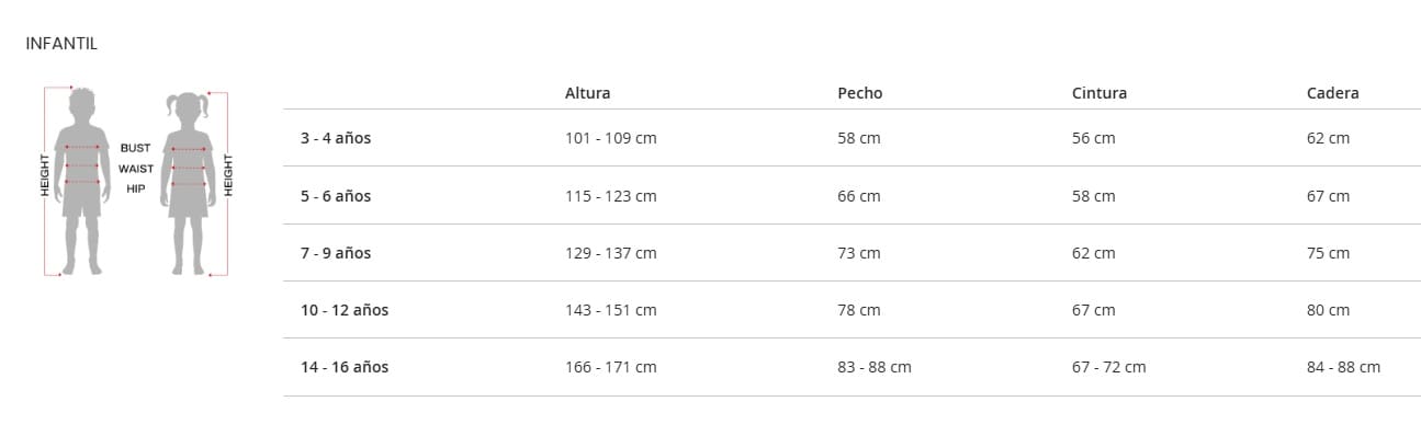 • Tamanho 7-9 anos : recomendado para crianças com altura aproximada de 117-135 cm.
