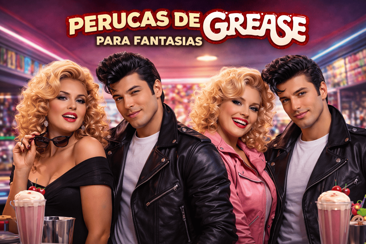 Na DisfracesTuyYo reunimos uma seleção especializada de perucas pensadas especificamente para fantasias de Grease, com penteados volumosos, bem estruturados e acabamentos cuidados. São ideais para Carnaval, festas temáticas, eventos de cinema, musicais ou celebrações onde o ambiente retro é protagonista.