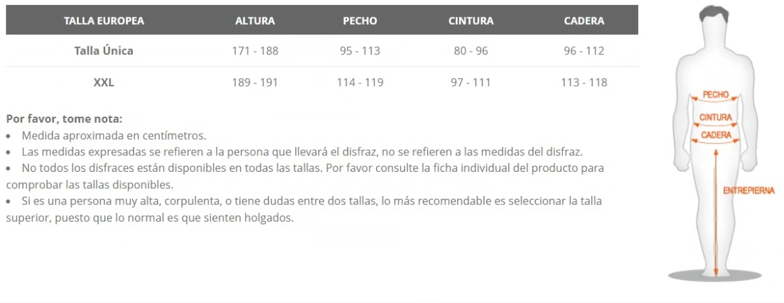 Este modelo foi concebido para adultos e é compatível com festas à fantasia para adultos , sendo também uma opção perfeita para atividades familiares ou festas onde participam personagens de todas as idades.